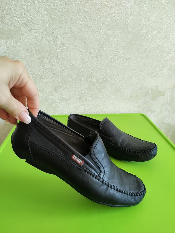 Лоферы мужские, внешне натуральная кожа, внутри чуточку на одном потрескался заменитель, на фото показала, есть дефект на подошве Бренд Prada Размер 40 Длина стельки 26.5 см 18 к.