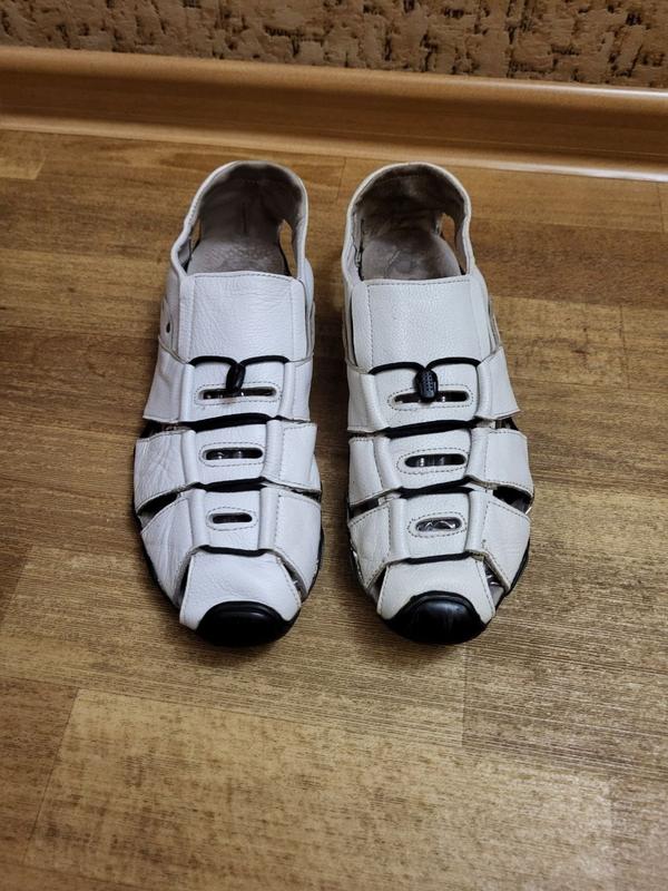 Полностью кожаные, снаружи и внутри. Размер 43 стельки - 28 см. Очень удобные на лето. Кожа толстая и мягкая ДЕФЕКТ ( последнее фото)