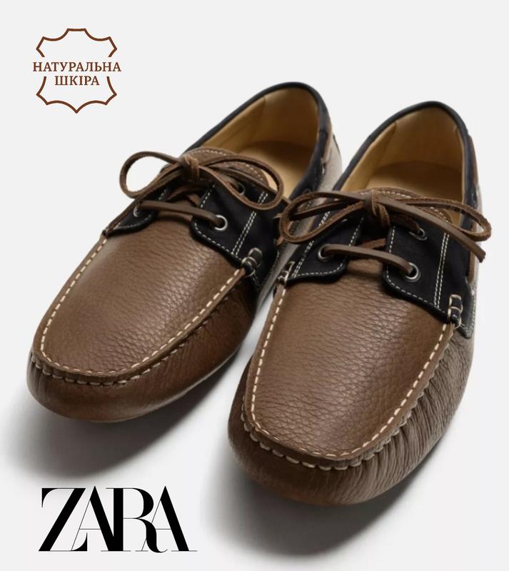 Мужские кожаные лоферы-топсайдеры Zara Повседневная модель из 100% натуральной кожи Круглая рукоять, классический дизайн Деталь со шнуровкой на подъеме и вокруг голенища Контрастная строчка, металлические люверсы Резиновая подошва с антискользящим эффектом Размеры в наличии: 40EU (26 см) 43 EU (28 см) Состояние: новые, с биркой и коробкой.