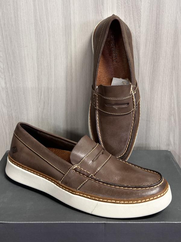 Шикарної якості шкіряні чоловічі топсайдери американського бренду SPERRY Розмір 43 повна устілка 28 см Стан - нові, без брендової коробки. Нюансів немає. Класичний силует топсайдерів з верхом з цільної шкіри LITE™, дубленої рослинними екстрактами. Оснащені фірмовою технологією підошви Wave-Siping™ для максимального зчеплення на мокрій та сухій поверхні. Sperry - американський бренд елітного взуття для яхтингу та відпочинку з 1935 року. У виробництві використовують виключно якісні матеріали. Багато взуття виготовляють досі з використанням ручної роботи.