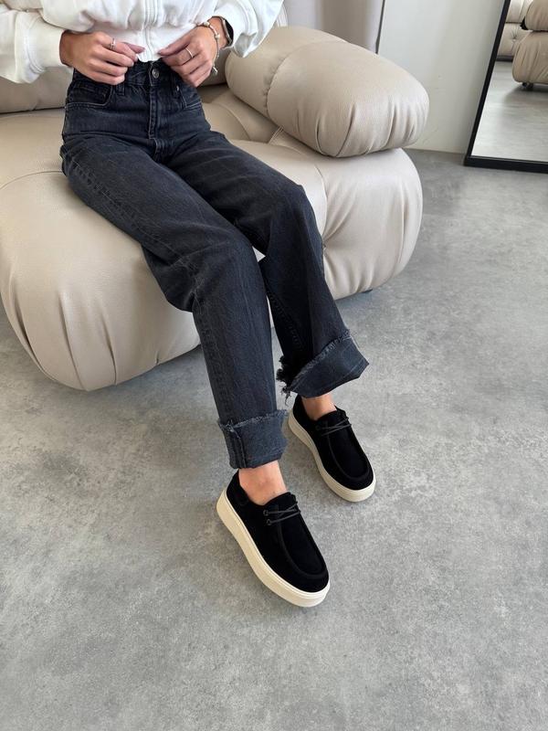 НОВИНКА ✨ Код 13111 Лофери Натуральна замша Колір Чорний+Беж Підошва 4см-3см Розмір у розмір 36-23,5см 37-24см 38-24,5см 39-25см 40-25,5см 41-26см