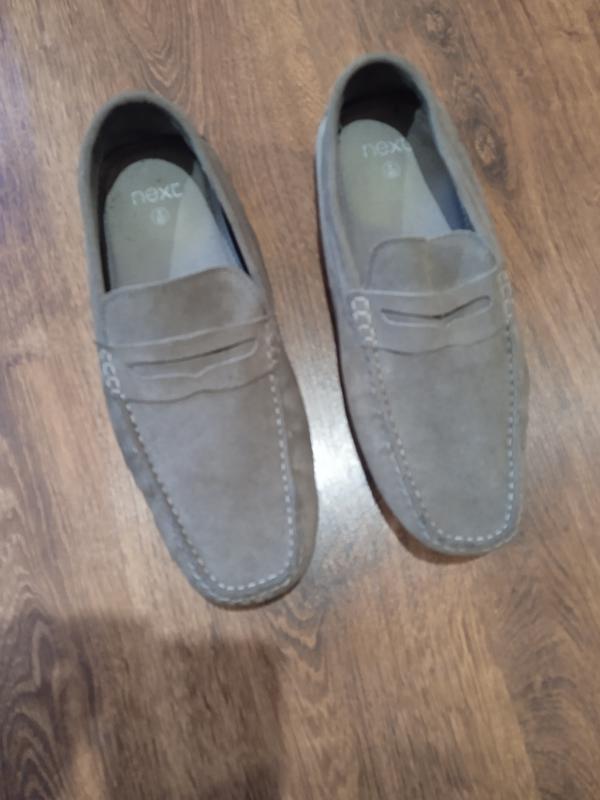 Продам замшевые мужские мокасины в хорошем состоянии как на фото Верх замша в середине подшиты тканью Размер пишет 43 длина по стельке 28.3-28.5 см. Фото 2 является пятно.