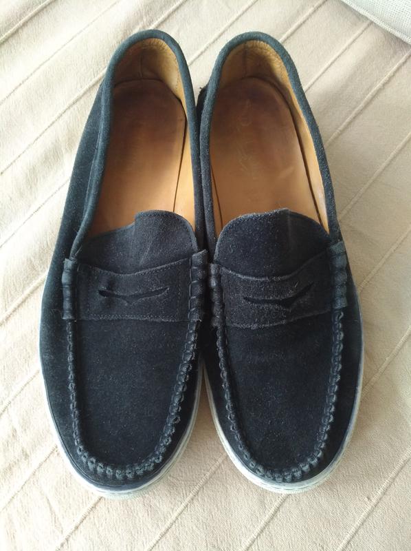 Оригинальные итальянские замшевые лоферы на белой каучуковой подошве. стелька 27.5