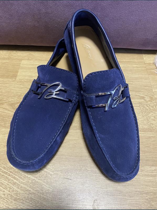 Синие замшевые мокасины фирмы Brioni, оригинал. Одеты пару раз, к сожаление не сохранился комплект. Размер EU10, стелька 30см. Подойдёт на наш 46. Новые такие стоят больше 1000$