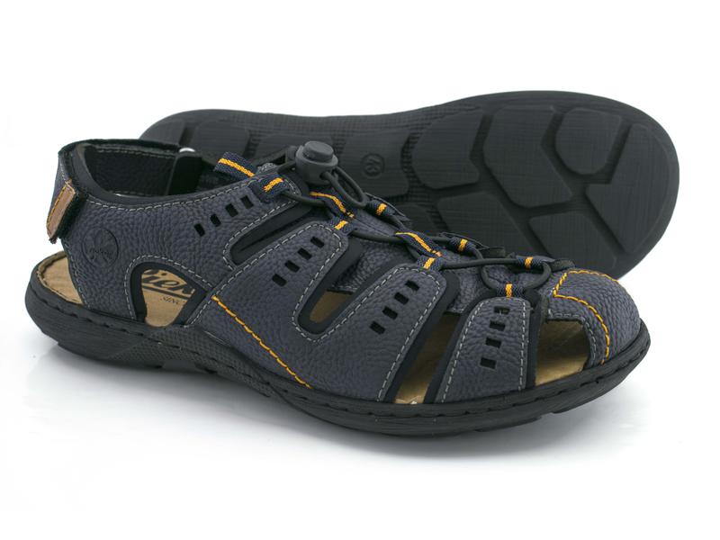 Классические немецкие мужские спортивные сандалии из гладкой натуральной кожи. Обувь в синем цвете, на липучках. Отлично подходят на широкую ногу с высоким подъёмом и проблемной косточкой. *внедрение технологий Antistress - подошв и memoSoft-стелек; *создание отдельного модельного ряда с ортопедическим уклоном: позволяют чувствовать себя комфортно людям с высоким подъемом, плоскостопием, увеличенной косточкой и т.д. Германия, кожа, синий, лето