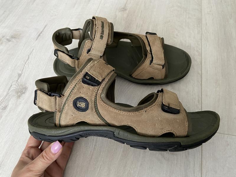 Стильні чоловічі сандалії Karrimor Antibes ідеально доповнять повсякденний гардероб. Ви оціните високу якість та добротне пошиття моделі. Вони створені з м'якою устілкою і тканинною підкладкою, які забезпечують затишок протягом усього дня. Дизайн пропонує просту, зручну посадку, ремінці, що регулюються, надійно фіксують взуття на нозі. Також модель обладнана міцною синтетичною підошвою, яка забезпечує підтримку, довговічність та комфорт для повсякденного зношування. Розмір 42, на ногу 27 см Оригінал В ідеальному стані