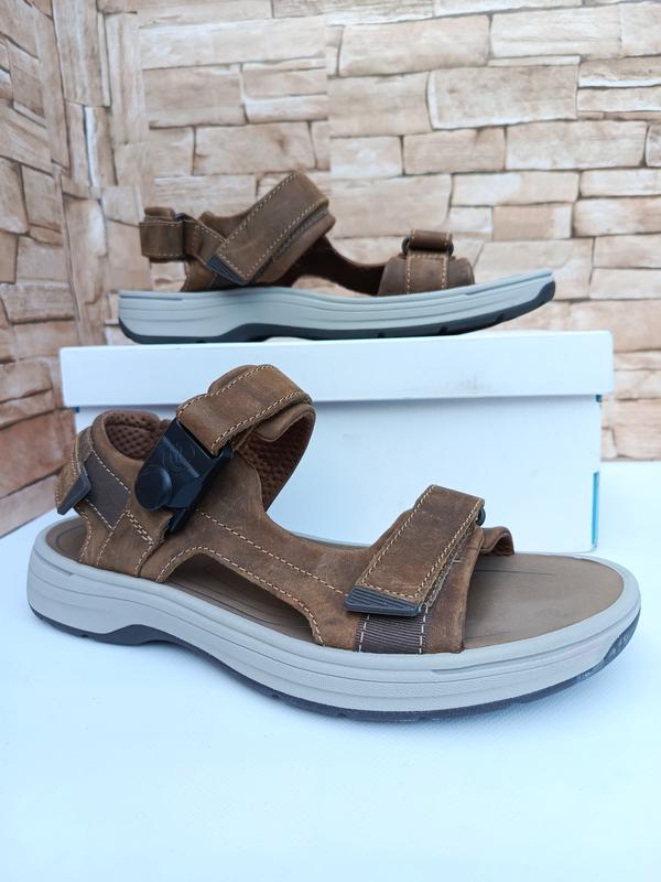 Оригинальные, очень легкие и удобные сандалии Clarks, по стельке 27.5 по факту,кожа,замки на магнитные, нериально крутые