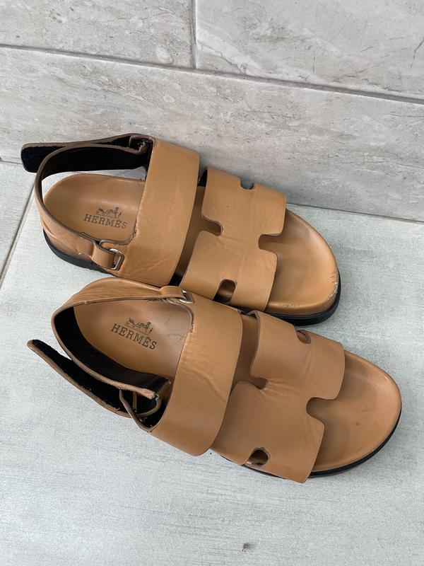 Продам мужские кожаные сандалии Hermes Takara.Сандалии были в носке. Есть незначительный сбитый носик, показан на фото — в носке абсолютно не заметно, на внешний вид и комфорт не влияет. Длина по подошве ≈27 см, на 41.5-42 размер. Если есть вопросы, пожалуйста, пишите и спрашивайте.