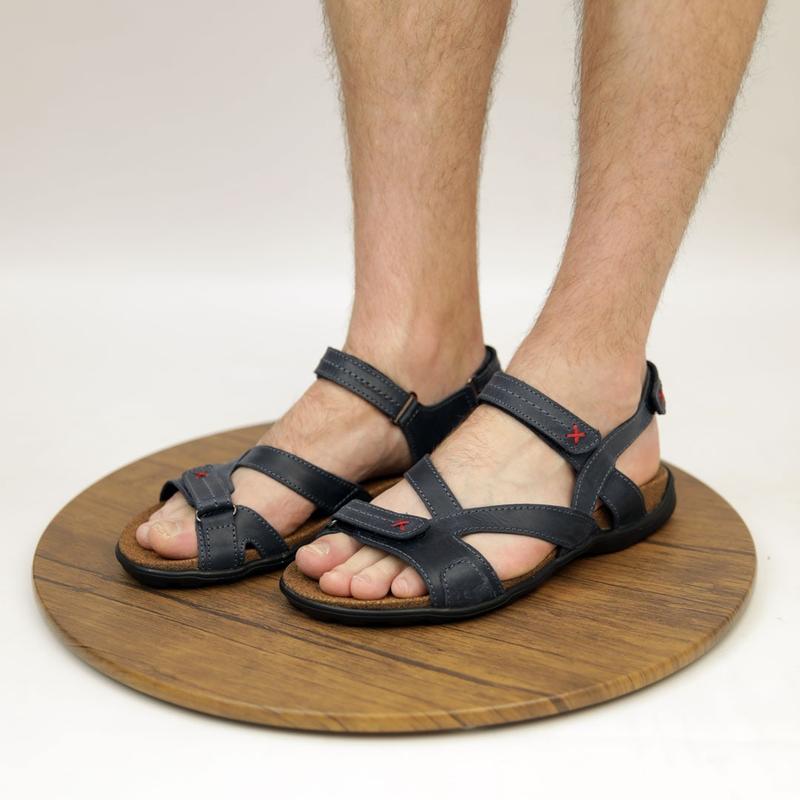 Сандалі чоловічі на липучках шкіряні сині (сандалі з натуральної шкіри синього кольору) -...