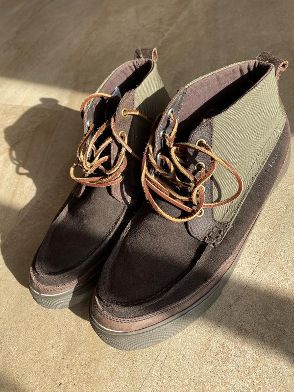 Черевики чоловічі Polo, нові, але ..стояли і попереду трохи відклеїлися і клеїв майстер і залишився слід від клею; можна пофарбувати і буде не видно; замовляли в Америці, довжина устілки 26,5 см