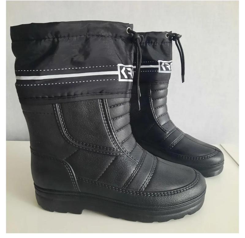 Абсолютно герметичные и водонепроницаемые сапоги. Сапоги из пены полностью лишены швов, куда могла бы просочиться вода. Благодаря пористой структуре ЭВА обладает прекрасными термоизолирующими свойствами. В сапогах из ЭВА ноги не мерзнут даже в сильные морозы. Для еще большего улучшения теплоизоляции сапоги комплектуют сменной утепляющей вкладкой из войлока и искусственного меха. Верх оснащен манжетой на затяжке.