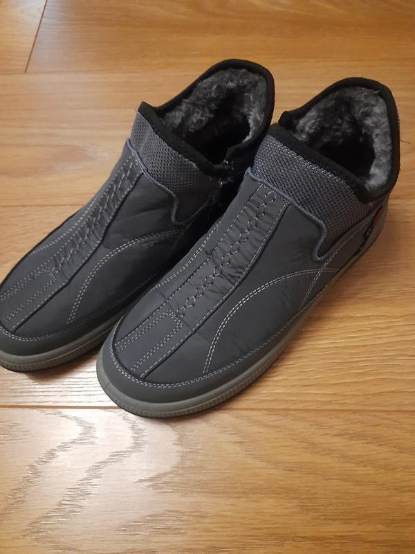 Ботинки серого цвета на 42р.Стелька 27см.Легкие, удобные, еврозима. Плащевка качественная.Новые.Чоловик разнашивал по дому, все равновесие малы. Китай, но премиум качества.
