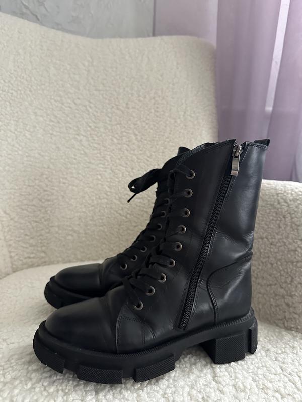 Довжина устілки -23 см Довжина замка-21 см Стан нових, у користуванні були декілька разів Натуральна шкіра ззовні, всередині штучне хутро