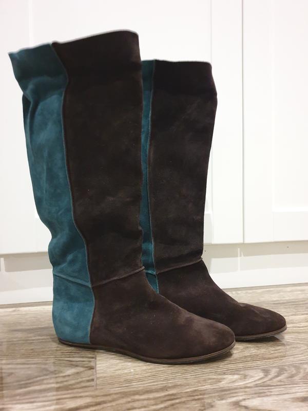 Сапоги Casadei Как новые, очень стильные и удобные. Натуральная замша.Оттенок немного отличается от фото, по крайней мере, на своём устройстве. Кожа снаружи и внутри. Размер 38 ( 24 см по стельке)