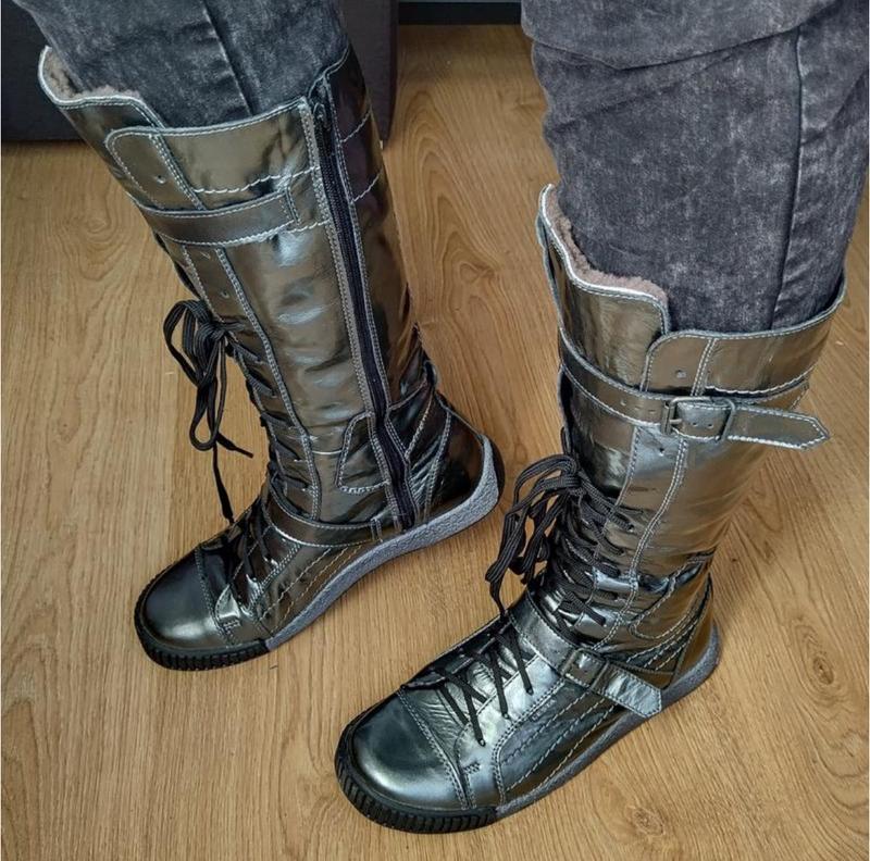 Чоботи черевики високі зимові утеплені хутро шкіряні