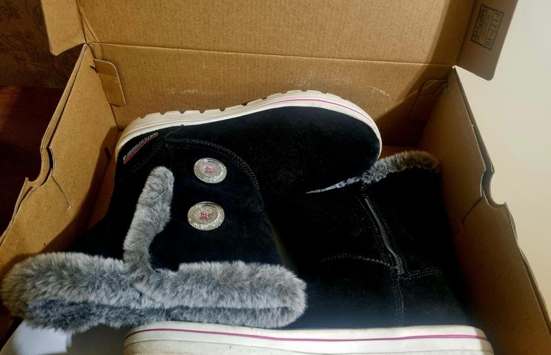 Фирменные сапоги. Надевали несколько раз, состояние идеально. Подошва белая, поэтому есть затертости, которые видны лишь при тщательном осмотре, поэтому цена значительно снизила. Действительно водостойкость. Теплые и удобные. Легко одеваются, имеют замочек.