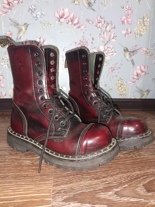 темно бордовые кожаные сапоги steel оригинальные размер стельки 25см надежные и износостойкие есть небольшой нюанс, который в носке не заметен(последнее фото)