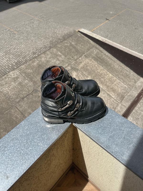 Продаю оригінальні вінтажні чоботи легендарного іспанського бренду New Rock. Це взуття виконане з якісної натуральної шкіри чорного кольору з масивною підошвою та металевими пряжками, які працюють як застібки-фіксатори, замінюючи шнурівки. Вінтажний стан додає їм особливого шарму, а незначні сліди носіння підкреслюють їхню автентичність. Модель універсальна та стильна, підійде для створення образів у стилях готика, панк, гранж або рок. Це не просто взуття, а справжній ексклюзив. Якщо залишилися запитання або потрібні додаткові фото, пиши — з радістю відповім!