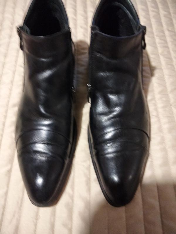 Ботинки мужские кожаные в красивом состоянии в размере 41, по стельке 28,5 см.Посередины утеплены флисом. Имеют по две молнии с обеих сторон.