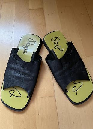Кожаные шлёпанцы, бренд Pepe Jeans. Стелька 26,5 см. На ногу с низким подьемом. Новые, без дефектов.