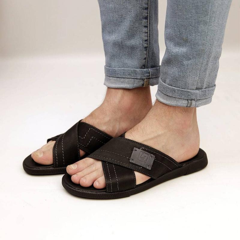 Стильные черные кожаные мужские шлепанцы, шлепанцы, шапки натуральная кожа - мужская обувь...