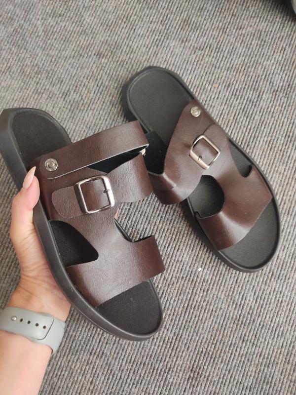Шлепанцы мужские Можно делать как босоножки Размер 40,42,45 в наличии Размер 40 26 см Размер 42 27,2 см Размер 45 28,9 см Замеры сделаны лично мной от края до края стельки внутри. Можно брать на стопу как указано в замерах. Цвет - коричневый. Эко кожа. Подошва гибкая при первом ношении могут закрасить кожу, следует промыть водой, затем не будут.