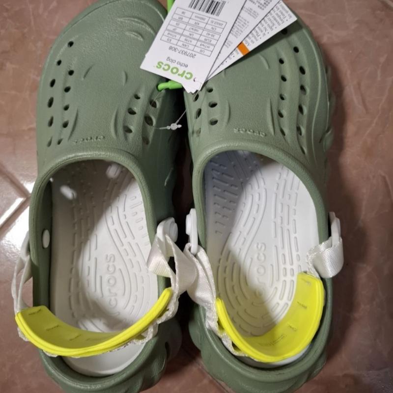 Echo Clog оригинал из США, РАЗМЕР 40, 41. ЦИНА 2500ГРН Коллекция Echo для тех, кто хочет комфорта без ущерба для своего внешнего вида. Это полностью формованное сабо не является конформистским, со смелой скульптурой и спортивным вдохновением, которое сохраняет уличную одежду в своей основе. Благодаря конструкции CrosliteTM и потолке LiteRideTM вы можете оставаться комфортными во время прогулок в коллекции Echo. Детали Echo Clog: Невероятно легкий и удобный в носке Полностью формованный верх и основание CrosliteTM Водонебезопасный и плавающий; весит всего унции Вентиляционные отверстия обеспечивают воздухопроницаемость и помогают отводить воду Легко чистится и быстро сохнет Подушечка на пятке на заднем ремне для дополнительного комфорта Настраивается с помощью брелоков JibbitzTM Поддержка двойной плотности с подошвой CrosliteTM и подножкой LiteRideTM