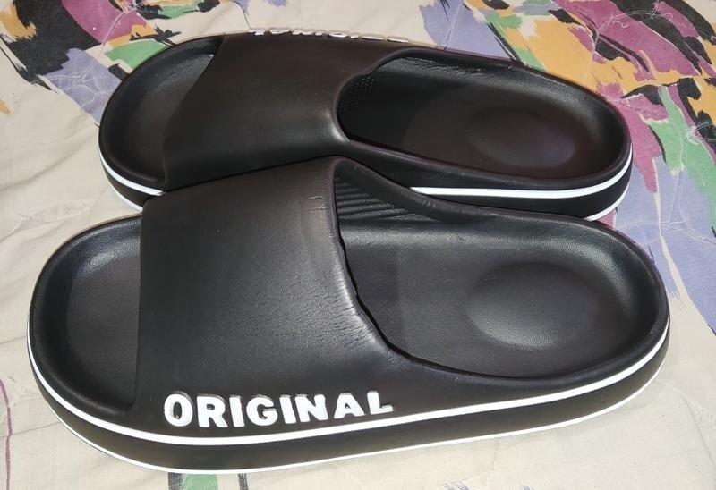 Літні шльопанці, розмір відповідає 42-43, устілка внутрішня — 27 см, від краю до краю — 28 см, матеріал EVA, м'які, легкі, зручні