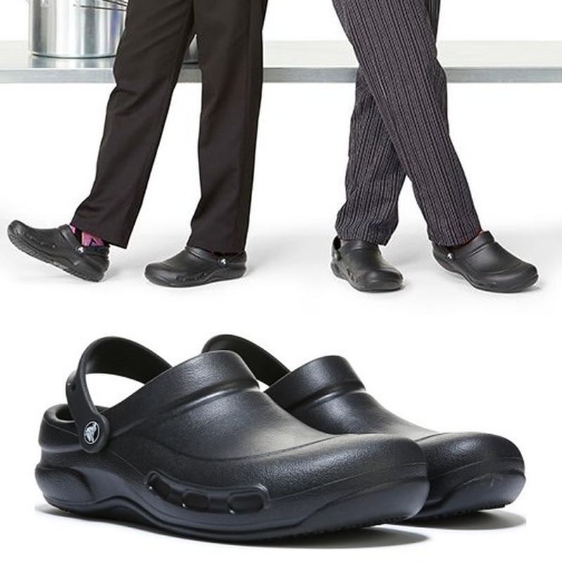 Клоги CROCS Bistro Work Clogs! черный Выберите кулинарное вдохновение и подайте серьезный комфорт с этими сабо Bistro Clogs. Разработанные с учетом требований работников общественного питания, гостиничного бизнеса и здравоохранения, они достаточно легкие и надежные, чтобы вы смогли продержаться даже в самую длинную смену. Устойчивый к скольжению протектор Crocs Lock, дополнительная защита пальцев ног и множество вариантов расцветок - все это вместе помогает вам подавать блюда в лучшем виде. Устойчивый к скольжению протектор Crocs Lock. Полностью литой и легко моется водой с мылом. Закрытый дизайн носка и утолщенная область плюсневой кости помогают защитить стопу от пролитой жидкости. Контурная стелька добавляет комфорта. Исконный комфорт Crocs: Легкие. Гибкость. 360-градусный комфорт. Размер: EU 41-42 / US M8,W10 / стопа 26см. EU 43-44 / US M10,W12 / стопа 28см. Проверено ASTM F2913-24, сертифицировано ASTM F3445-24, сертифицировано CE. ТОВАР НОВЫЙ, ВКЛЮЧАЯ БИРКИ & УПАКОВКУ!