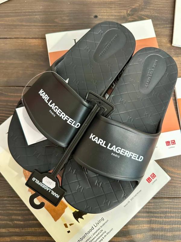 Чорнi слайди з фiрмовим логотипом вiд Karl Lagerfeld Paris Розміри: 42 (US-9) - довжина по устілці 29 см 43 (US-10) - довжина по устілці 29.5 см 44 (US-11) - довжина по устілці 30 см Матерiал: резина
