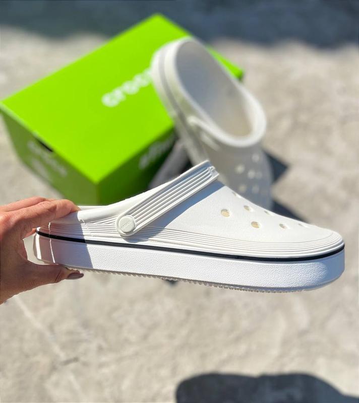 Off Court Clog White Стильные и легкие сабо Crocs в белом цвете с повышенной подошвой. Очень удобные, амортизационные, с ремешком для надежной фиксации. Идеальны для ежедневного использования. Отправка ежедневно Новой Поштой, Укр-почтой, является обменом и возвращением.