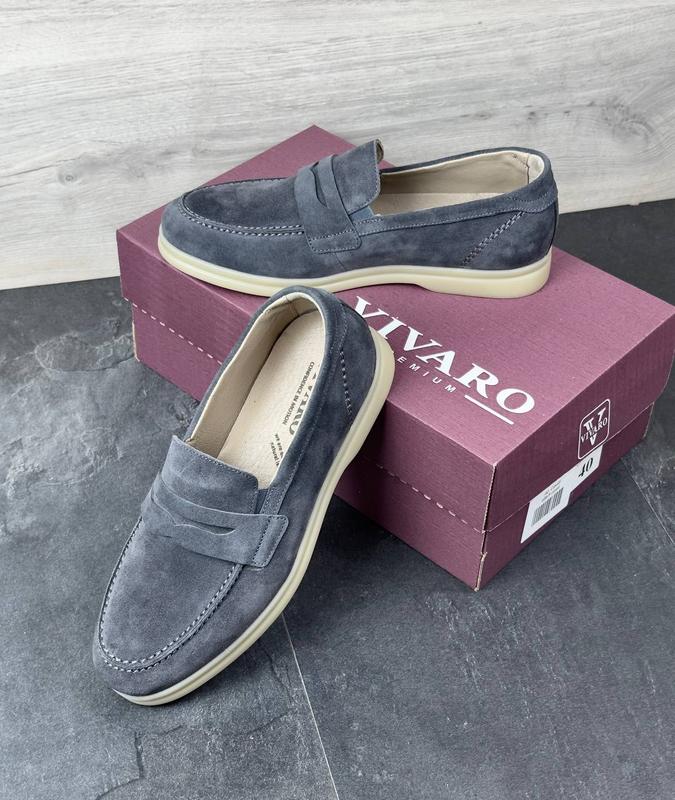 Мужские замшевые лоферы (топ качество) от Харьковского производителя Код: 688/5 серый Сезон: весна-осень Тип: полуботинки Пол: мужской Цвет: серый Верх: натуральная замша Середина: натуральная кожа (стелька натуральная кожа) Материал подошвы: термополиуретан Размеры: 40,41,42,43,44,45. 40-(26 см) 41-(27 см) 42-(28 см) 43-(28,5 см) 44-(29 см) 45-(30 см)