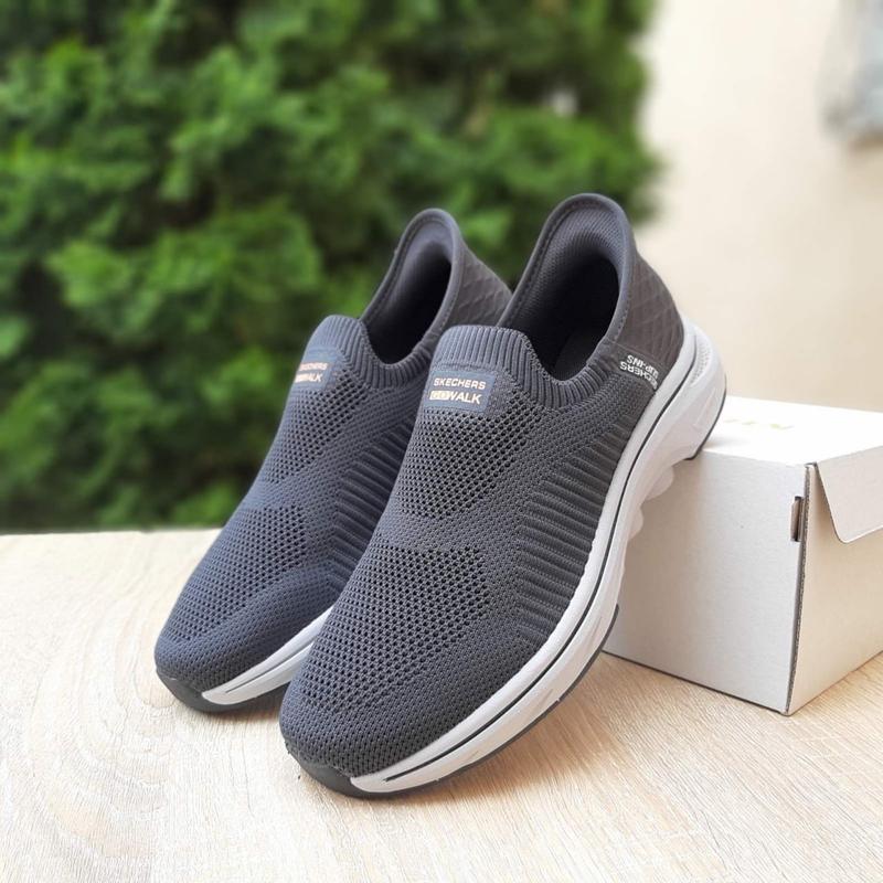 Чоловічі якісні сліпони мокасіни тапкі skechers slip-ins go walk темно сірі