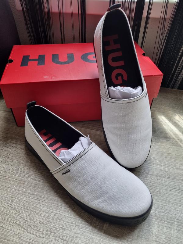 Стильные брендовые слипоны Hugo заказывали на сайте Answer. Мужчина обувал их один раз в ресторан, не совсем подошли по размеру-большим. Детали товара: Материал - Ткань Подошва: Резина Размер и соответствие: Длина стельки: 29см Ширина обуви: 10см Толщина подошвы: 1.5 cm Общая высота обуви: 8.5 cm Производитель: HUGO BOSS AG Адрес: Holy-Allee 3, Metzingen, 72555 Niemcy