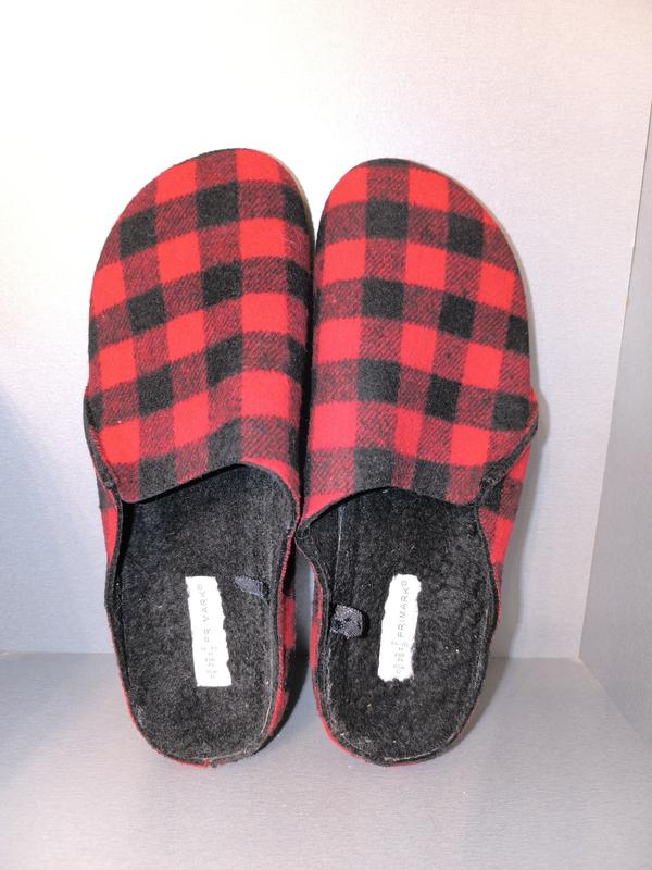 качественные мужские клиги тапочки красные в клетку. очень теплые и мягкие, но на жесткой подошве. размер 45, длина стельки 29.5 см.