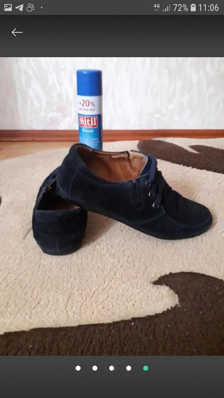 туфлі чоловічі (можна для підлітка), р.40, натуральний замш, темносинього кольору, на додаток крем-фарба для догляду за взуттям із замшу.