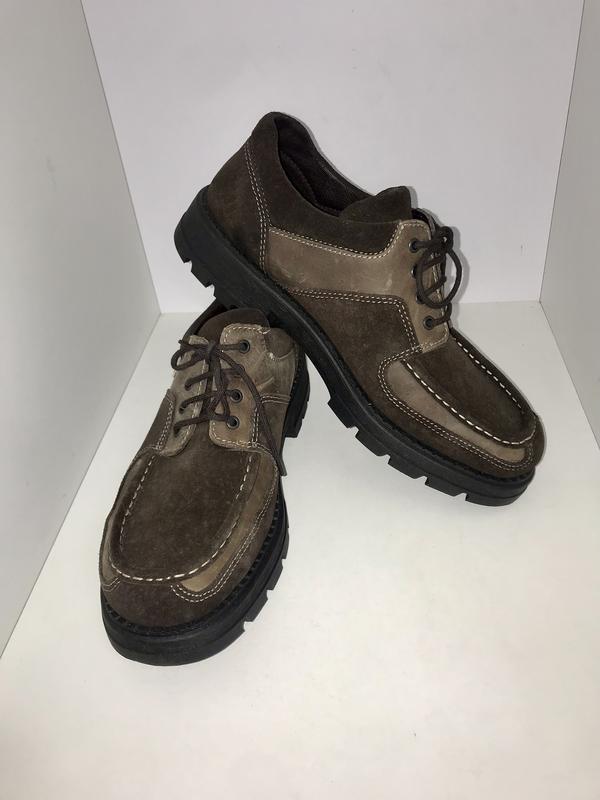 Модель від відомого німецького бренду Rohde, який виготовляє комфортне, якісне та зручне взуття. Верх виготовлений з натуральної шкіри та замші. В середині натуральна та еко шкіра. Застібка шнурівка для зручного взування та утримання ноги на підйомі. Оздоблені декоративними швами контрастного кольору та піднесеним напівкруговим швом. Є мембрана SympaTex, що забезпечить водонепроникність та сухість вашим ногам. Устілка оригінальна, шкіряна, анатомічната, не виймається. Підошва ребриста, зностійкий матеріал. Черевики комфортні та зручні. Підійдуть для щоденної хотьби та прогулянок. Стан ідеальний. Розмір: 7 1/2; Устілка: 26.5 см.; Ширина підошви: 11 см. Дивіться інші наші оголошення.