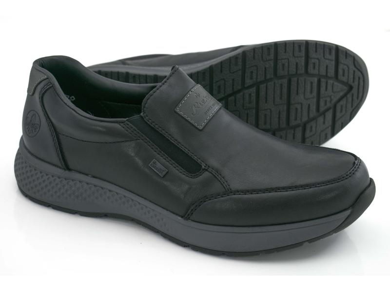 Оригинальные мужские немецкие классические туфли из плотной натуральной кожи. Обувь выполнена в черном цвете. Обувь с мягкой текстильной подкладкой с мембраной RiekerTEX.