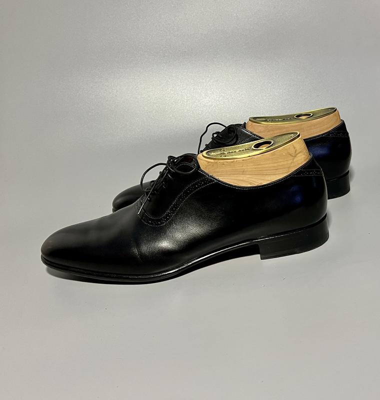 Классические черные оксфорды ручной работы от итальянского бренда идеальной обуви Santoni. Размер бренда 11 (45). Идеальное состояние