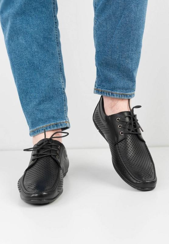 Мужские черные туфли 109168 💥Материал верха: Экокожа 💥Материал стельки: Экокожа 💥Цвет: Черный 💥Вид застежки: Шнуровка 💥Сезон: Лето 💥💥Размеры: 40, 41, 42, 43, 44, 45 💥Цена : 740 грн