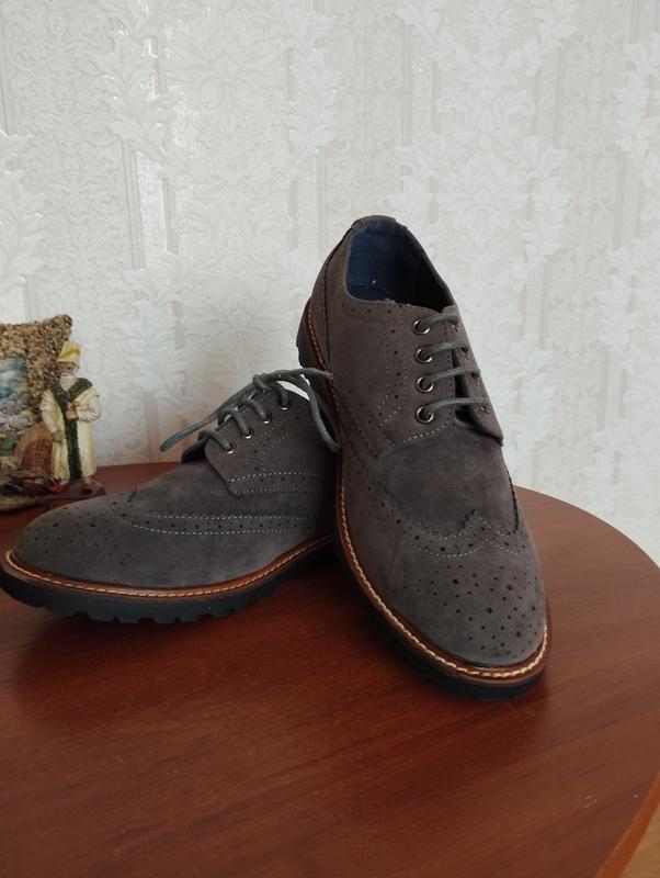 Фирменные новые туфли.Нубук.Длина стельки -26см.Цвет серый.