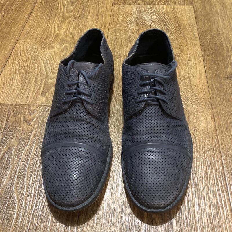 Туфли полностью кожаные . Подошва тоже кожа . В отличном состоянии , Без нюансов Цвет темно серый . Размер 43 . По стельке 29 см