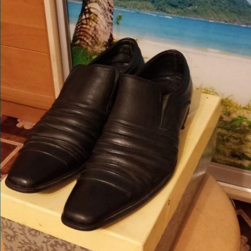 Туфлі чоловічі, колір чорний, подовжена шкарпетка, шкіра З боків язичка гумки Розмір: 39