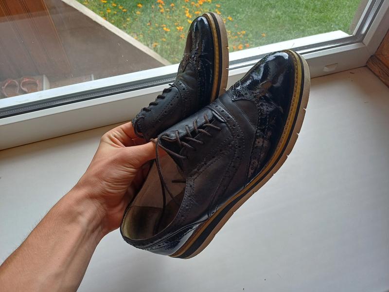 На одном из туфель спереди есть незначительные потрепанья. Но так они в хорошем состоянии. Стелька - 24 см. Маломерки.