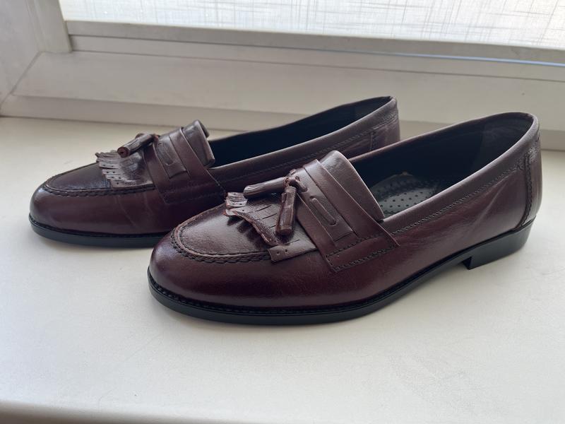 Винтажные туфли лоферы.Гладкая итальянская кожа, произведенные в Италии.Очень красивый насыщенный цвет бордо,размер 43; стелька 29 см;новые. Мельница унисекс.На хрупкую мужскую или полноразмерную женскую ногу.