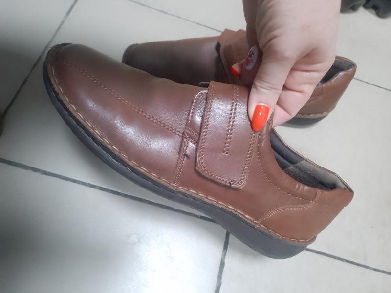 Кожаные мужские туфли на липучках р.44/кожаные туфли,из недостатков на стельках была наклеена сверху еще одна стелька,то остались остатки мягкого паролона,треба познимать,или заменить на новые, но я не махала бы, качество красивое,ное hotter