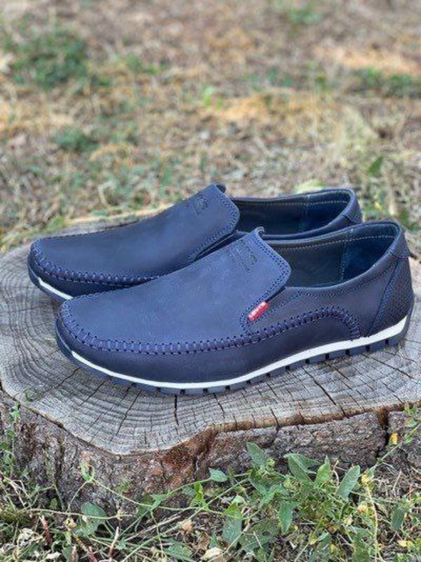 Туфли мокасины мужские синего цвета с натуральной кожи