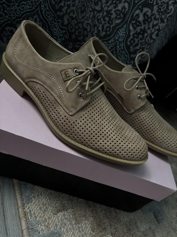 Мужские туфли новые, не носил.В идеальном состоянии.Сезон лето.Бежевый цвет, выполненные под замшу.Размер 41