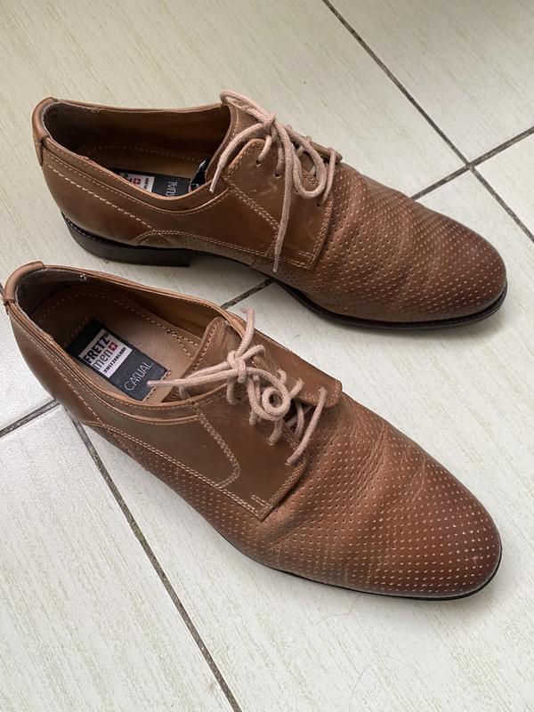 Кожаные туфли длина стельки 28 см Натур кожа снаружи и в середине Без дефектов лежат следы на подошве