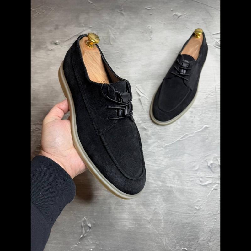 Стильные мужские замшевые туфли в черном цвете, мужские лоферы на шнурках натуральная замш...